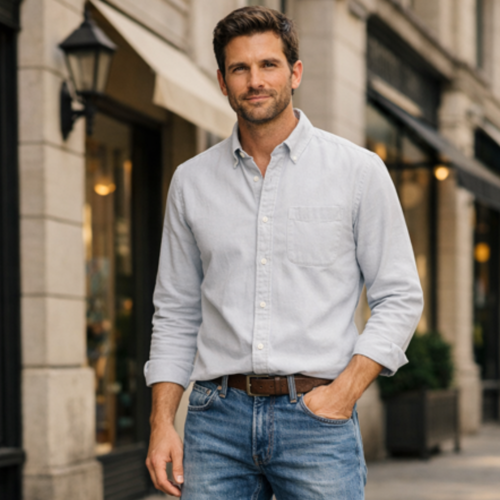 Antonio Modern Casual Shirt – where timeless Italian design meets effortless versatility. Crafted from a lightweight, breathable cotton blend, this men’s shirt ensures all-day comfort and a crisp, polished look from morning to night. Its classic button-down collar and structured chest pocket reflect refined craftsmanship, while the regular fit provides freedom of movement without sacrificing elegance. Whether paired with tailored trousers for work or jeans for the weekend, this shirt adapts seamlessly to every occasion — a true essential for the modern man who values style, comfort, and sophistication.